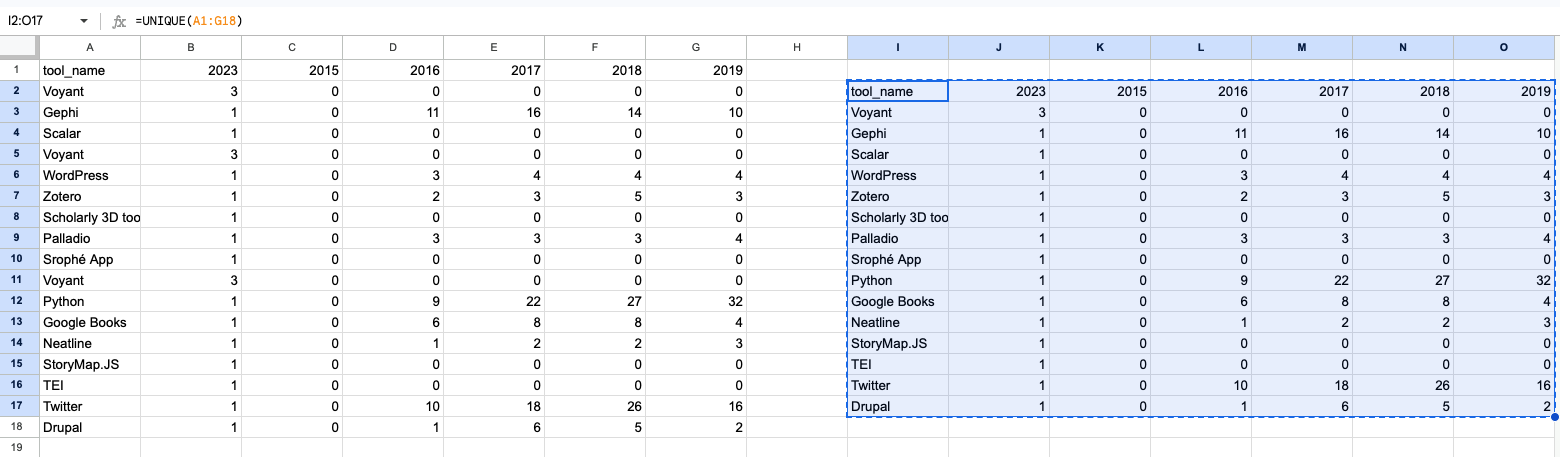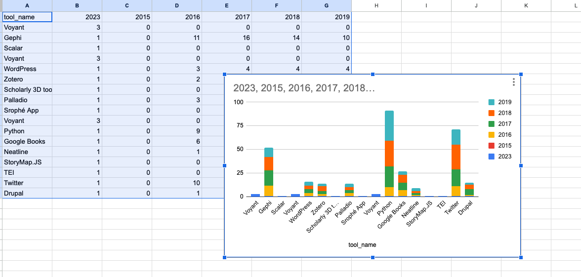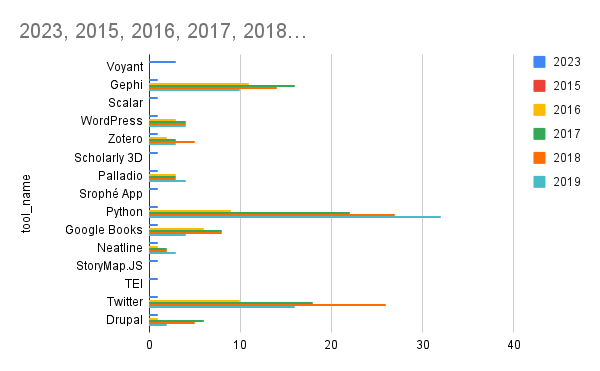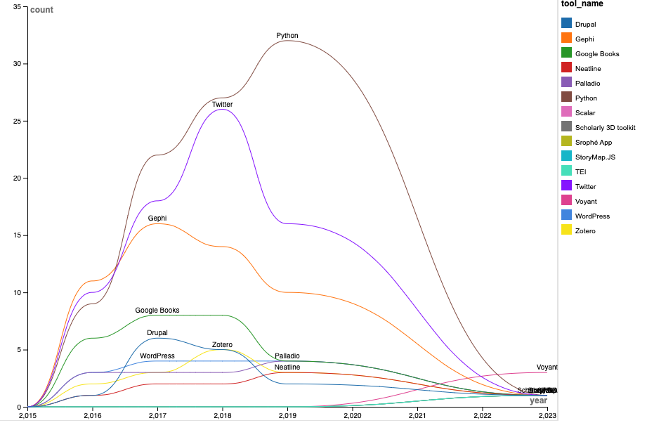 - The tools dataset from the blog post titled “What Tools are Popular in DH”