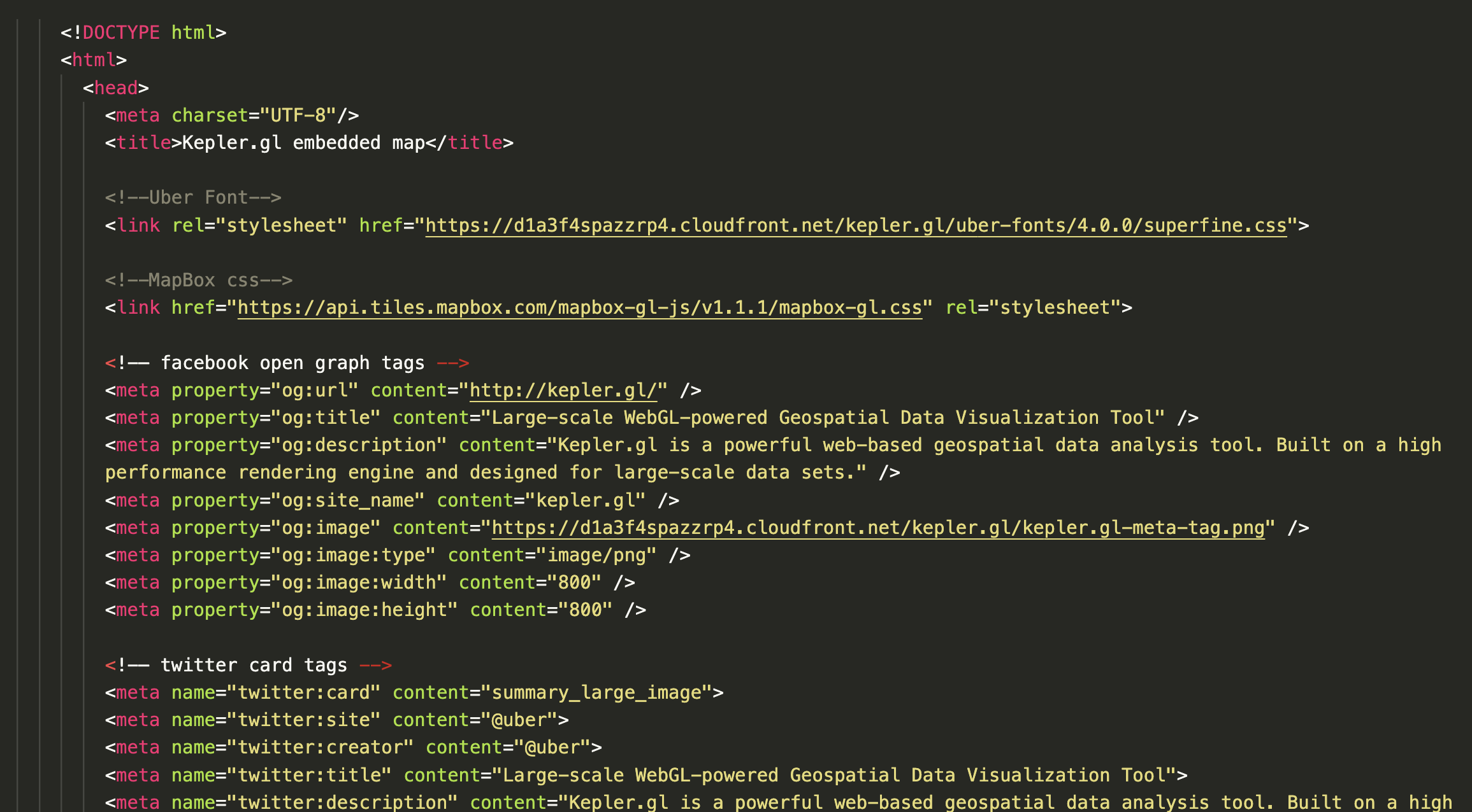 Our Kepler map is saved in a file format that has the extension .html. But even if you’ve heard of HTML, what is it actually? When we open this file in programs other than our browsers, we see the following code: