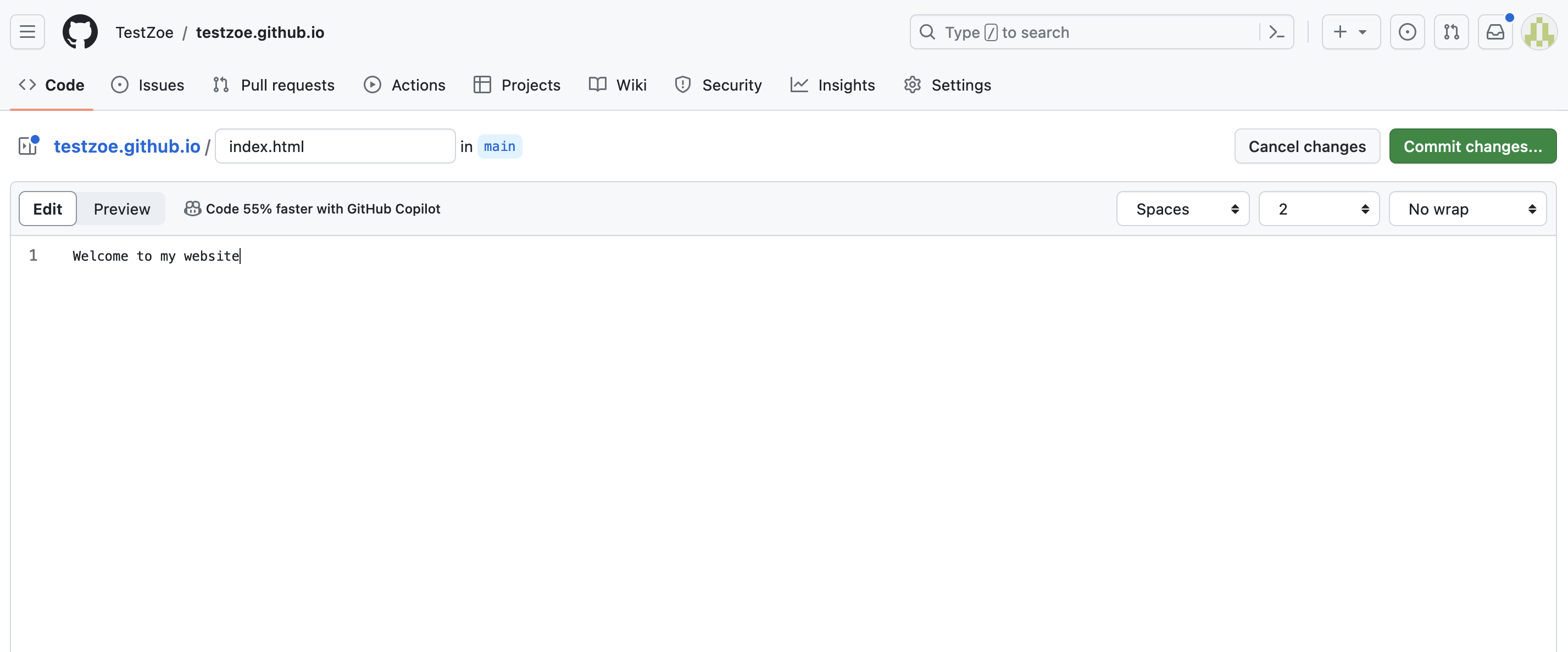Once you’ve created your index.html file, you can either leave it blank or add some HTML code. Now the key thing is to remember to commit your HTML page. Remember committing is how we save things on GitHub. So you can either commit via the command line with your Terminal or via the GitHub website.