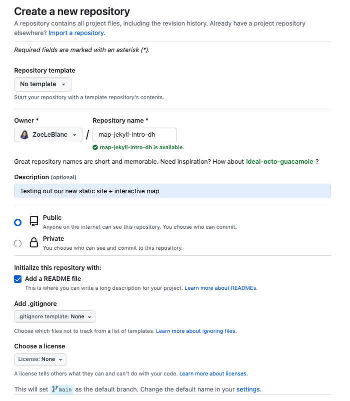 If you do create a new repository, be sure to make it public and add a README.md file.