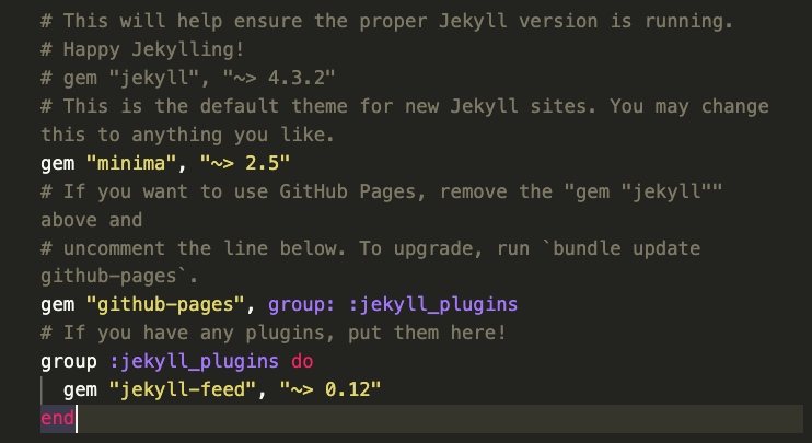 You’ll notice that’s there an automated message saying that we should add a line to our Gemfile to make sure that GitHub Pages correctly renders our site: